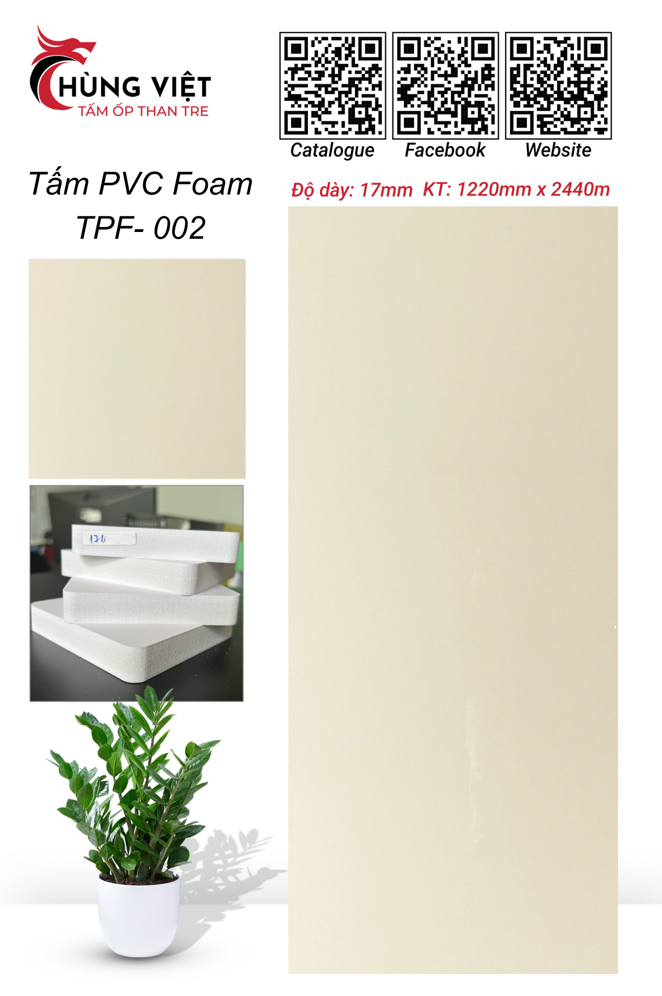 Tấm PVC Foam 17mm – TPF 006-Màu Trắng