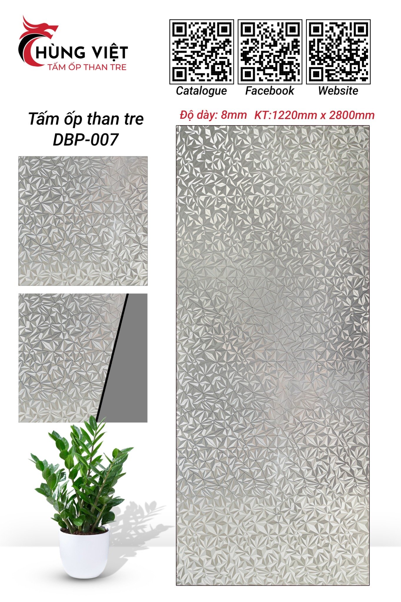 DBP-007 là sản phẩm trang trí nội thất thế hệ mới, kết hợp hoàn hảo giữa vẻ đẹp tự nhiên độc đáo và công nghệ sản xuất hiện đại từ than tre. Sản phẩm mang đến giải pháp ốp tường/trần ốp được góc cong với độ bền cao đến 25 năm.