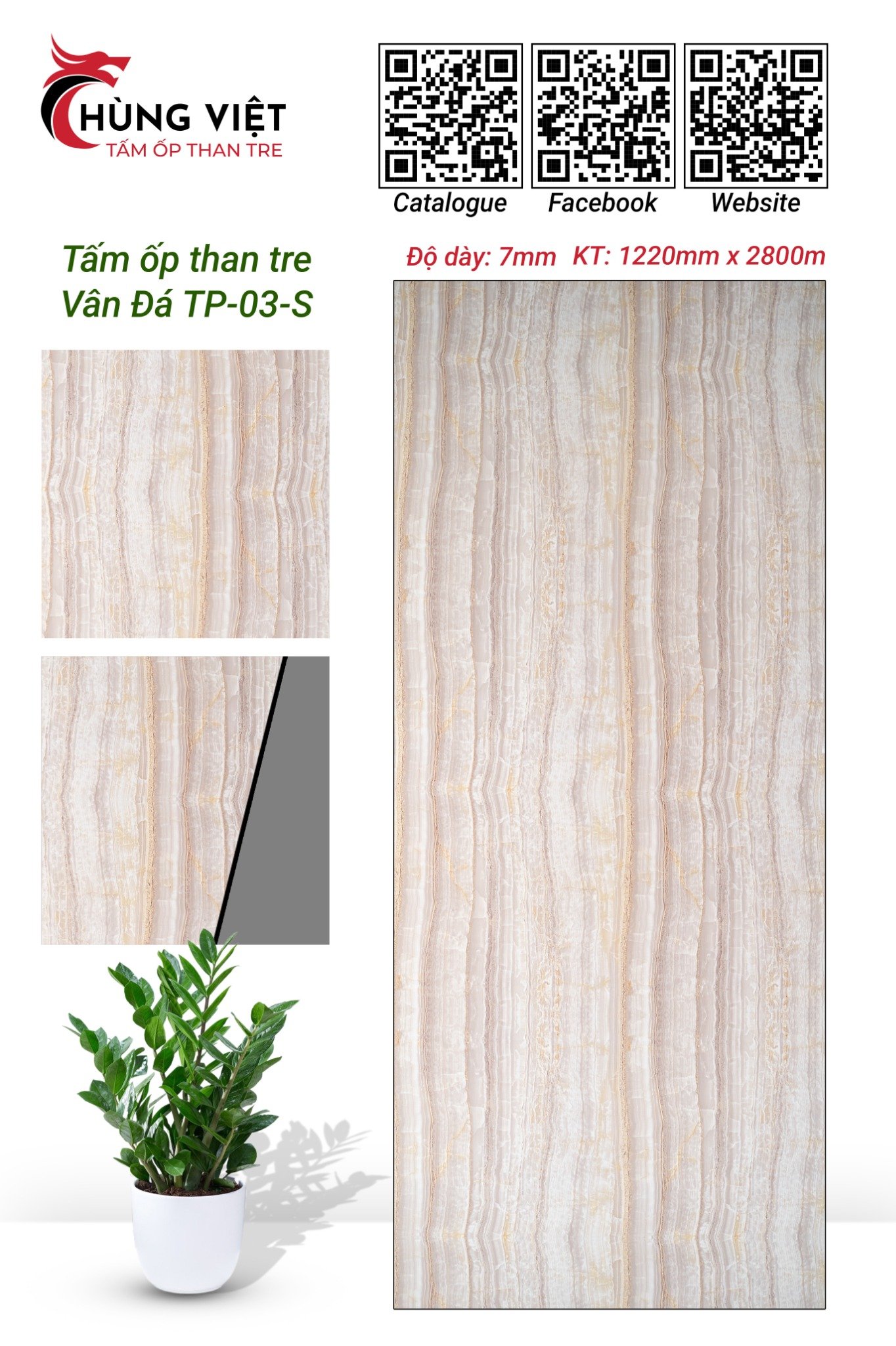 Tấm tấm ốp than tre vân đá DB-03S là giải pháp trang trí nội thất toàn diện, kết hợp công nghệ sản xuất hiện đại với thiết kế thẩm mỹ cao, đáp ứng tiêu chuẩn an toàn quốc tế về cháy nổ và sức khỏe. Với cấu tạo 4 lớp chất lượng cao, thông số kỹ thuật vượt trội và quy trình lắp đặt chuyên nghiệp, sản phẩm này là lựa chọn tối ưu cho các công trình xây dựng hiện đại đòi hỏi sự bền vững, an toàn và thẩm mỹ cao. Vui lòng liên hệ qua số 0936.295.512 để được tư vấn thêm về sản phẩm.