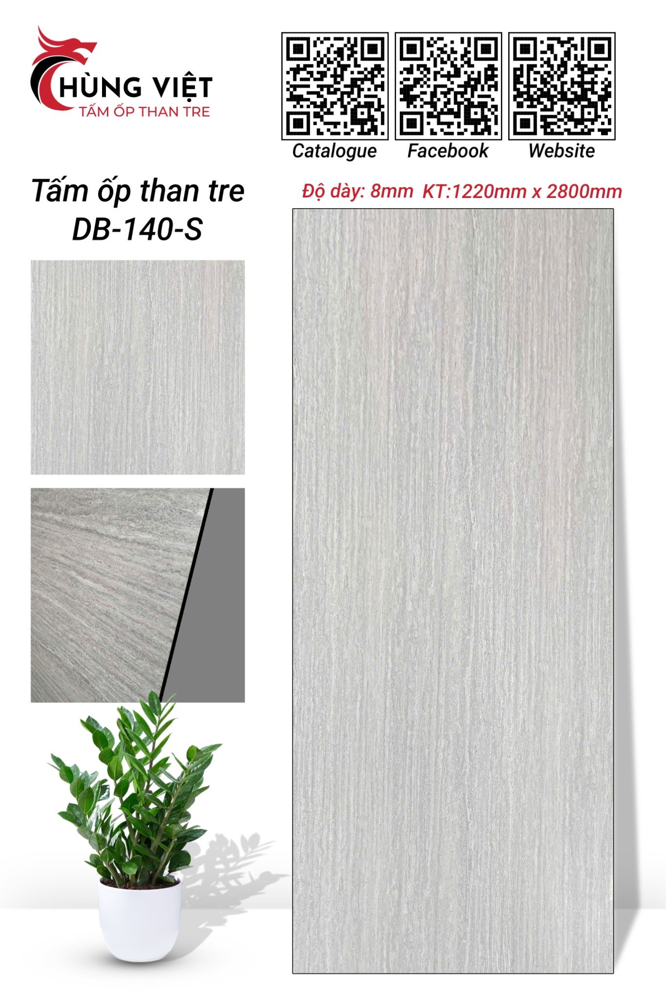 Tấm tấm ốp than tre vân đá DB-140S là giải pháp trang trí nội thất toàn diện, kết hợp công nghệ sản xuất hiện đại với thiết kế thẩm mỹ cao, đáp ứng tiêu chuẩn an toàn quốc tế về cháy nổ và sức khỏe. Với cấu tạo 4 lớp chất lượng cao, thông số kỹ thuật vượt trội và quy trình lắp đặt chuyên nghiệp, sản phẩm này là lựa chọn tối ưu cho các công trình xây dựng hiện đại đòi hỏi sự bền vững, an toàn và thẩm mỹ cao. Vui lòng liên hệ qua số 0936.295.512 để được tư vấn thêm về sản phẩm.