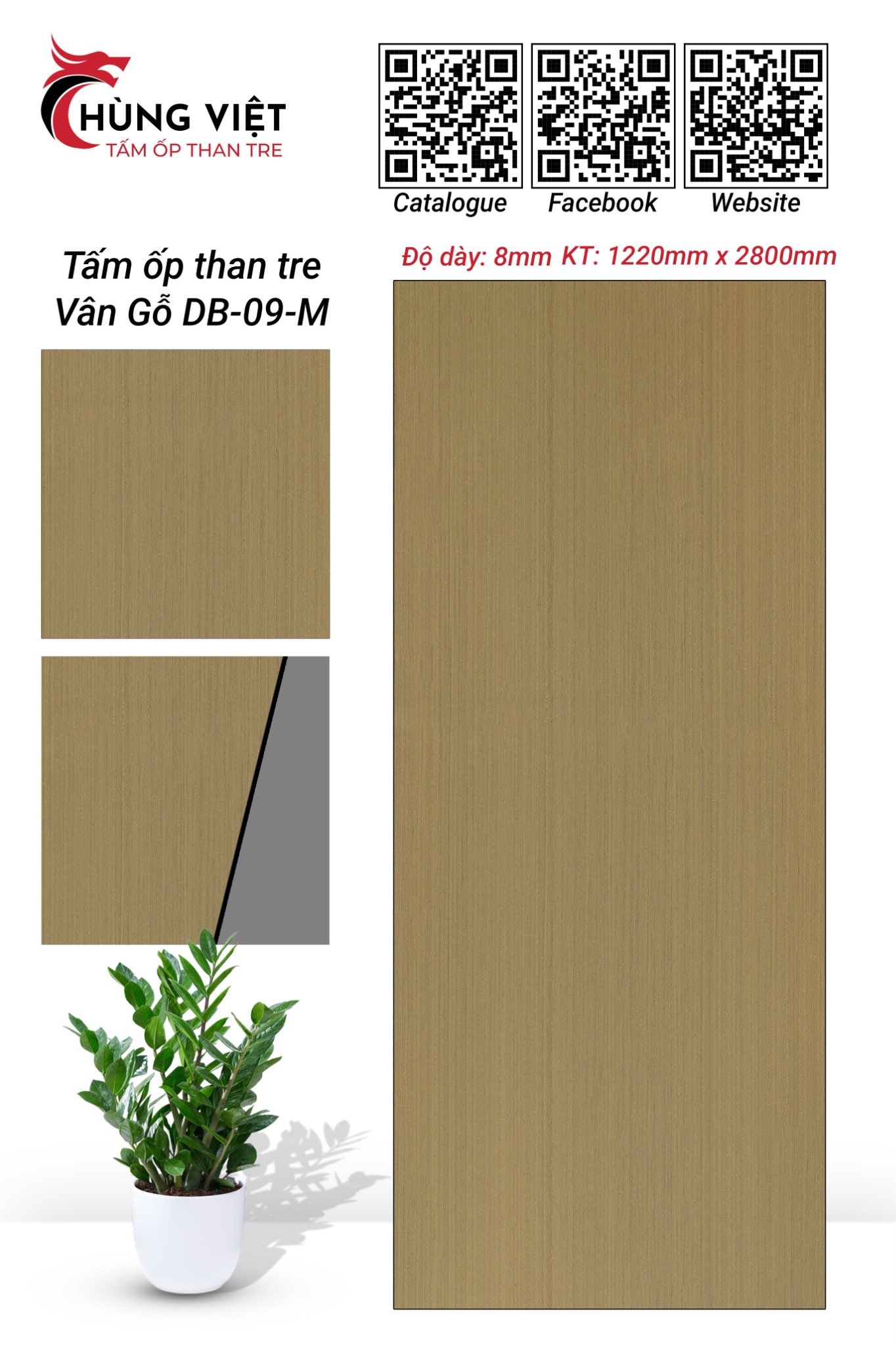 Tấm ốp than tre Hùng Việt vân gỗ DB-09M là sản phẩm trang trí nội thất thế hệ mới, kết hợp hoàn hảo giữa vẻ đẹp tự nhiên của vân gỗ độc đáo và công nghệ sản xuất hiện đại từ than tre. Sản phẩm mang đến giải pháp ốp tường/trần giả gỗ ốp được góc cong với độ bền cao đến 25 năm.