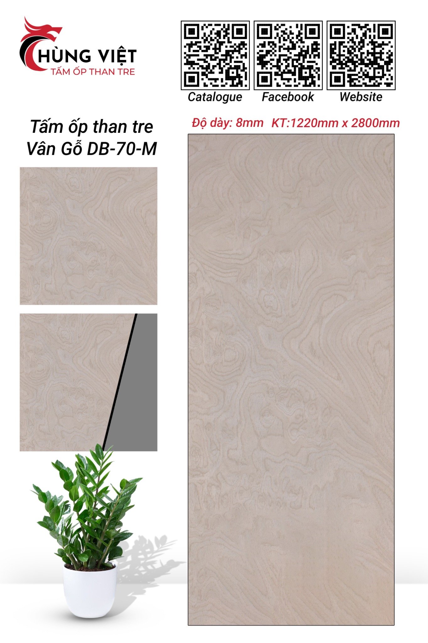 Cấu tạo tấm ốp than tre vân gỗ DB-70M