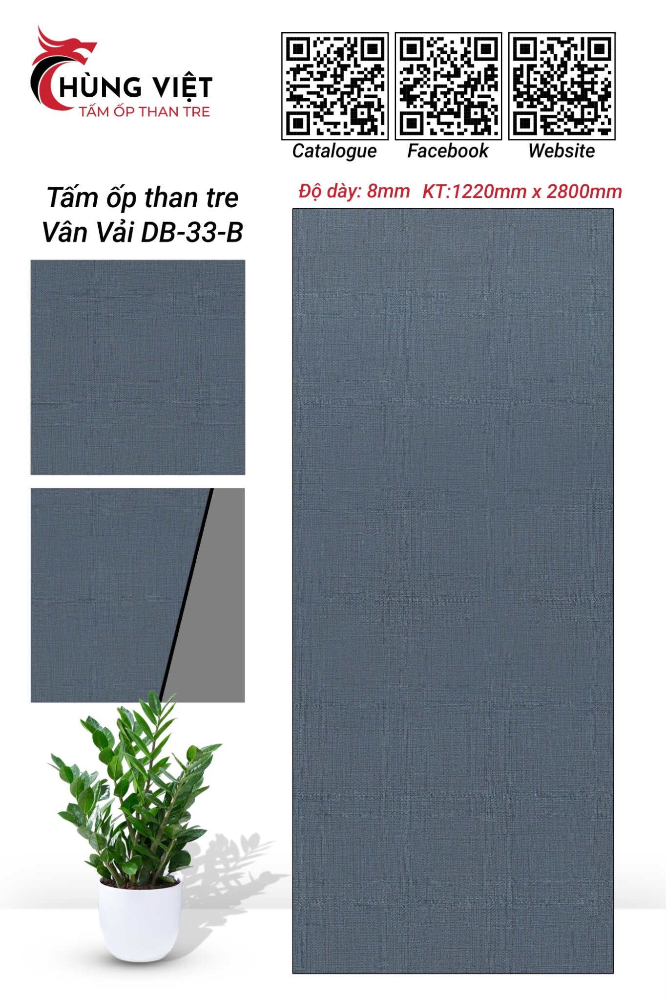 Tấm ốp than tre Hùng Việt vân vải DB-33B là sản phẩm trang trí nội thất thế hệ mới, kết hợp hoàn hảo giữa vẻ đẹp tự nhiên của vân vải sáng độc đáo và công nghệ sản xuất hiện đại từ than tre. Sản phẩm mang đến giải pháp ốp tường/trần giả vải sáng ốp được góc cong với độ bền cao đến 25 năm.