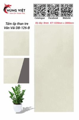 Tấm ốp than tre Hùng Việt vân vải  DB-126B là sản phẩm trang trí nội thất thế hệ mới, kết hợp hoàn hảo giữa vẻ đẹp tự nhiên của vân vải độc đáo và công nghệ sản xuất hiện đại từ than tre. Sản phẩm mang đến giải pháp ốp tường/trần giả vải sáng ốp được góc cong với độ bền cao đến 25 năm.